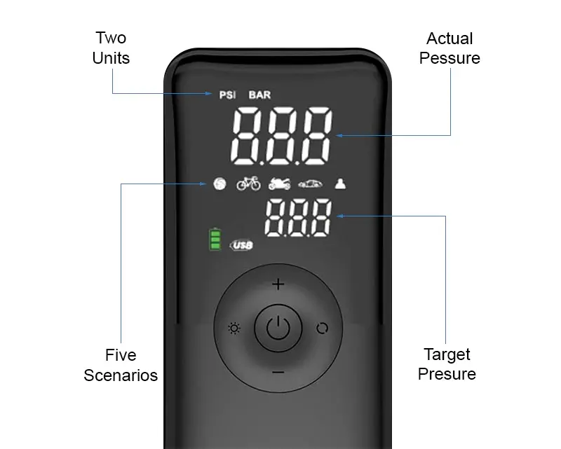 Das ergonomische Design sorgt für eine einfache Handhabung, während das moderne LED‑Display den Reifendruck präzise anzeigt.